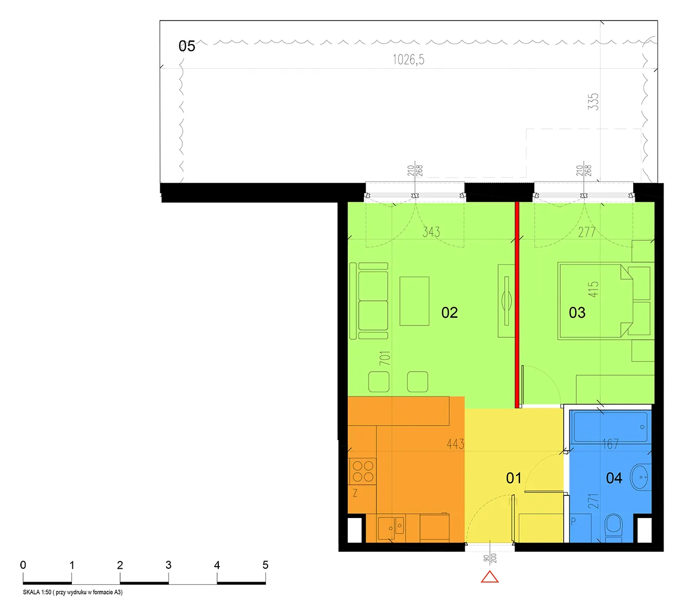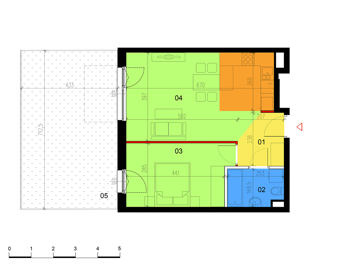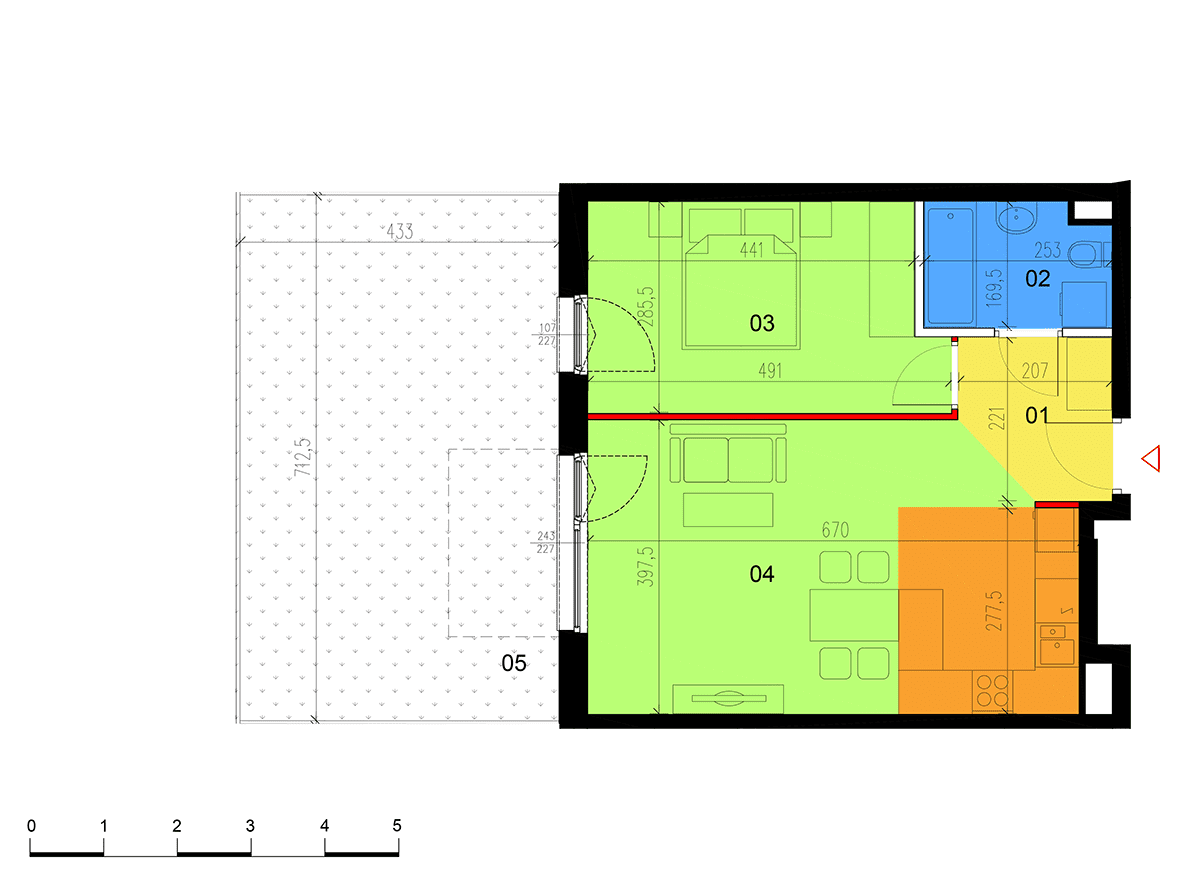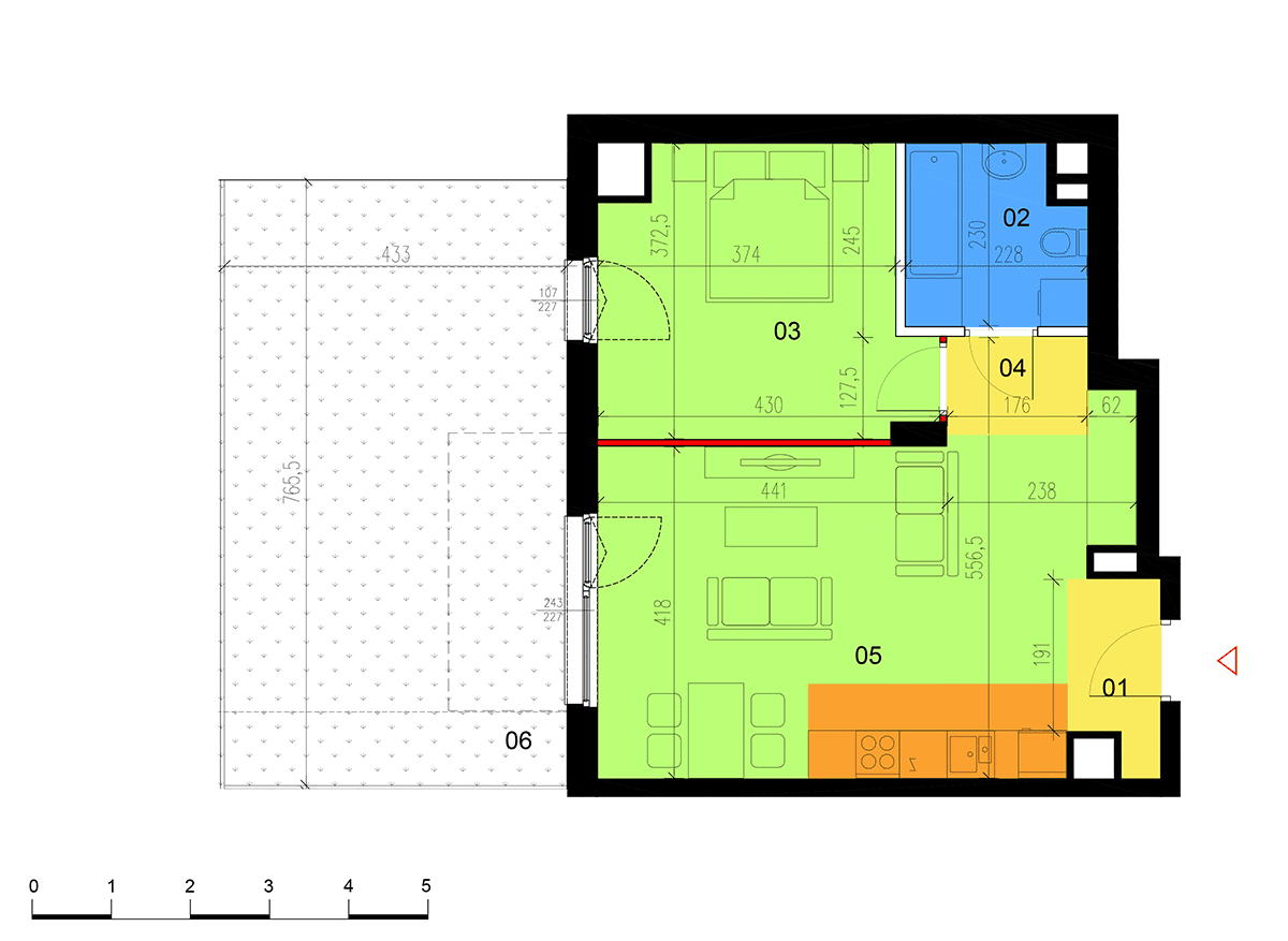 Apartment No.: 05 Area (sq meters): 46,29m2 Price per 1m2: Ask Balcony or terrace area: 30,84m2 No. of rooms: 2 Exposure: zach State of completion: w trakcie budowy ![]() |