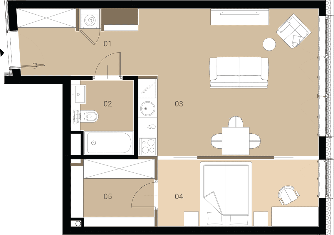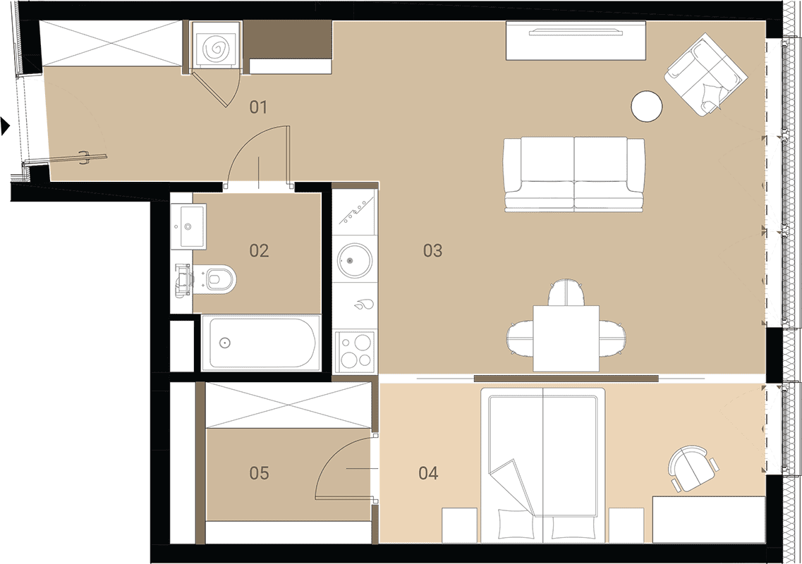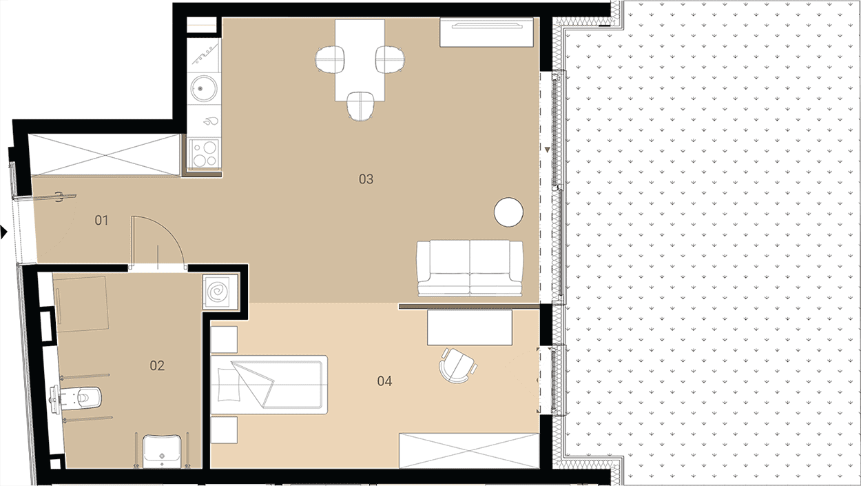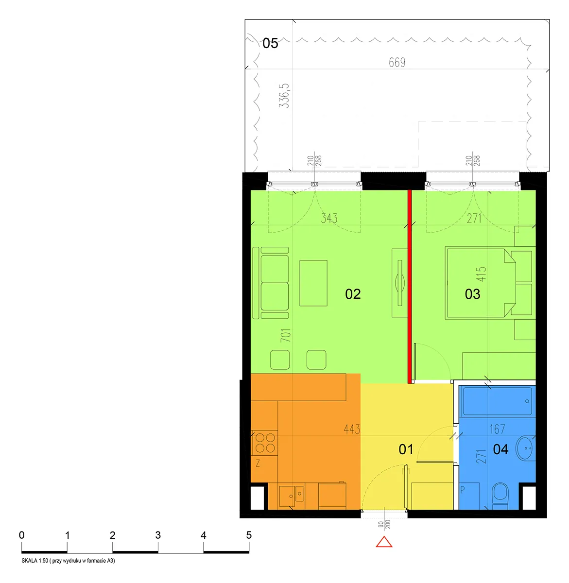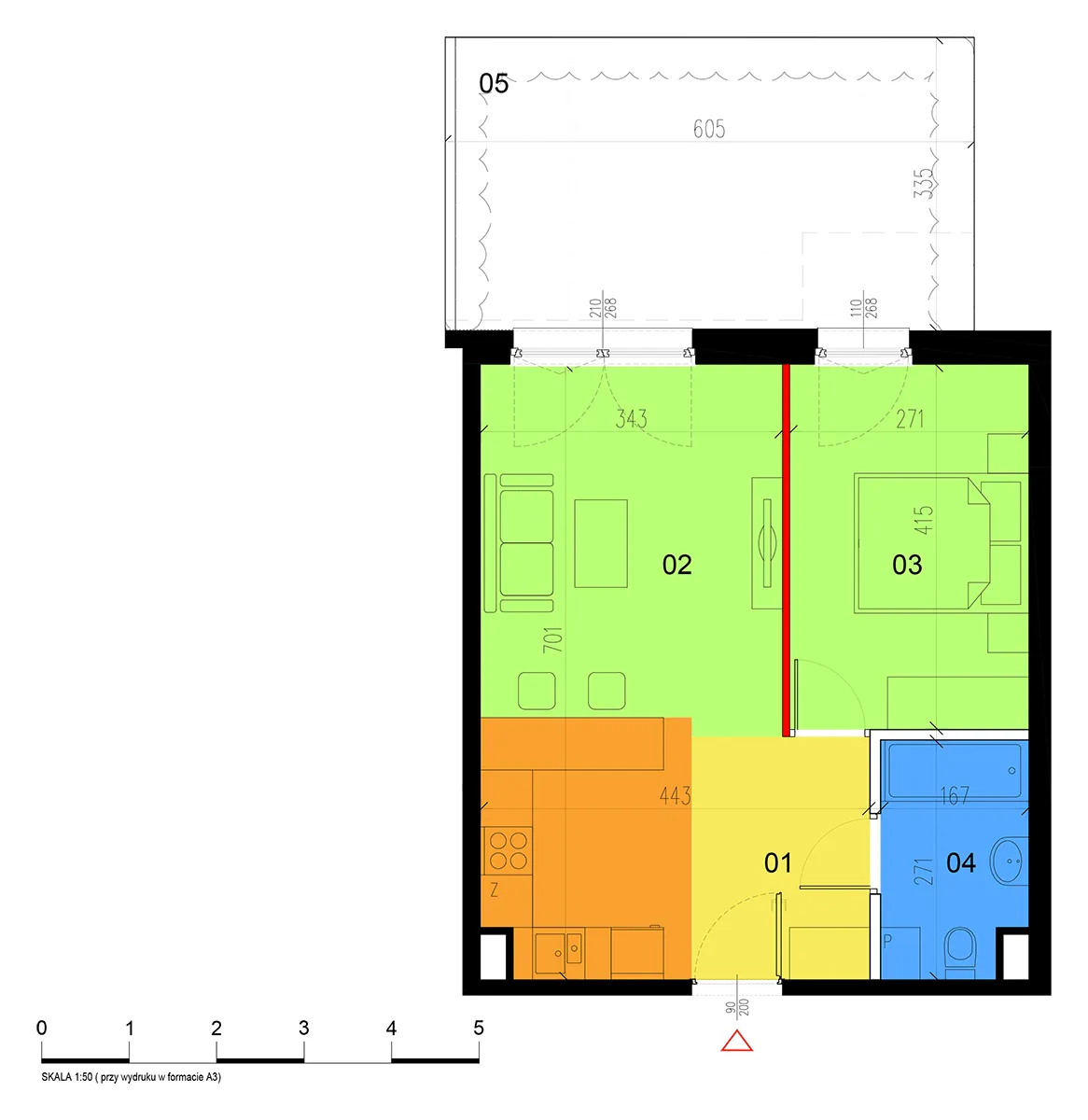 Apartment No.: 05 Area (sq meters): 46,29m2 Price per 1m2: Ask Balcony or terrace area: 30,84m2 No. of rooms: 2 Exposure: zach State of completion: w trakcie budowy ![]() |