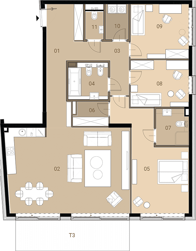 Apartment No.: 09 Area (sq meters): 61,10m2 Price per 1m2: Ask Floor: 1 Balcony or terrace area: 3,38m2 No. of rooms: 3 Exposure: zach State of completion: w trakcie budowy ![]() |
