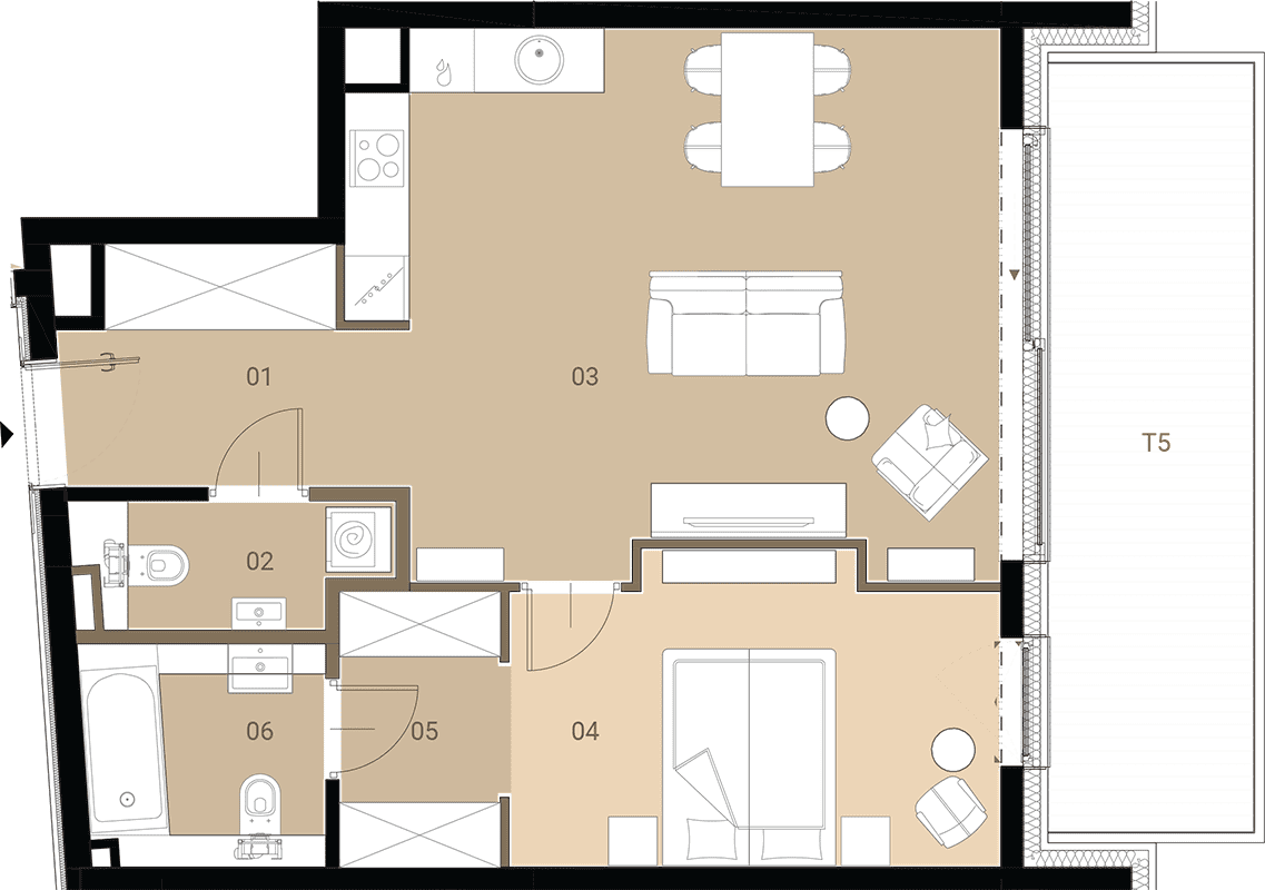 Apartment No.: M05 Area (sq meters): 57,47m2 Price per 1m2: Ask Balcony or terrace area: 13,68 m2 No. of rooms: 2 Exposure: płd State of completion: w trakcie budowy ![]() |