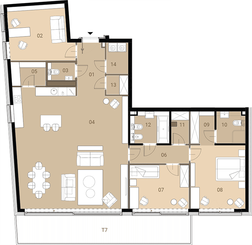 Apartment No.: M07 Area (sq meters): 140,38m2 Price per 1m2: Ask Balcony or terrace area: 22,59m2 No. of rooms: 4 Exposure: płn/zach State of completion: w trakcie budowy ![]() |