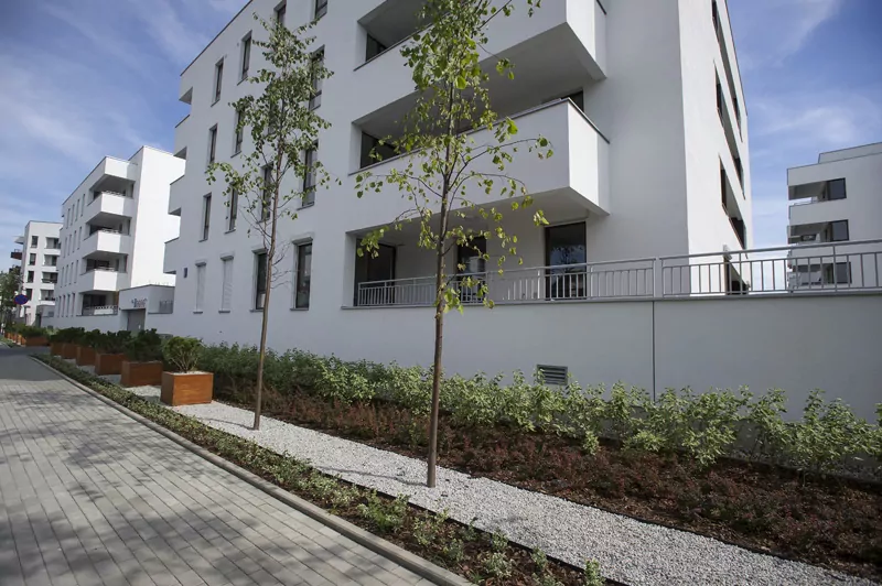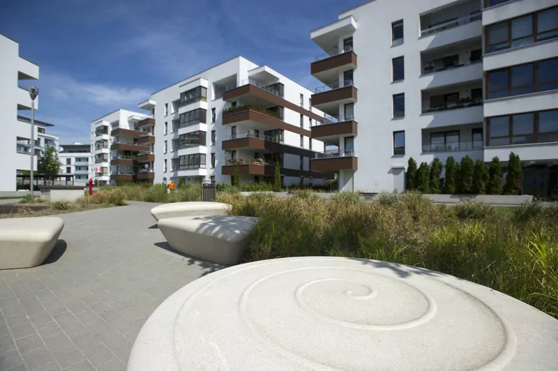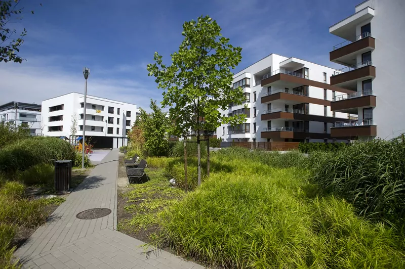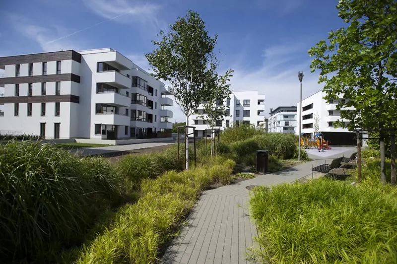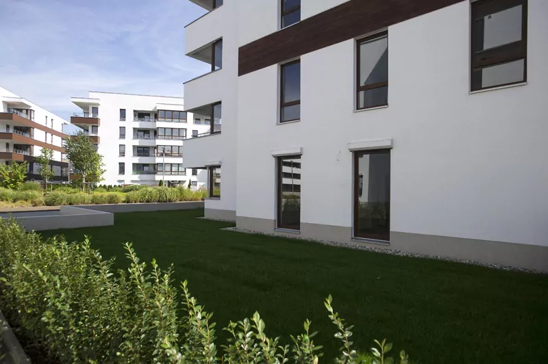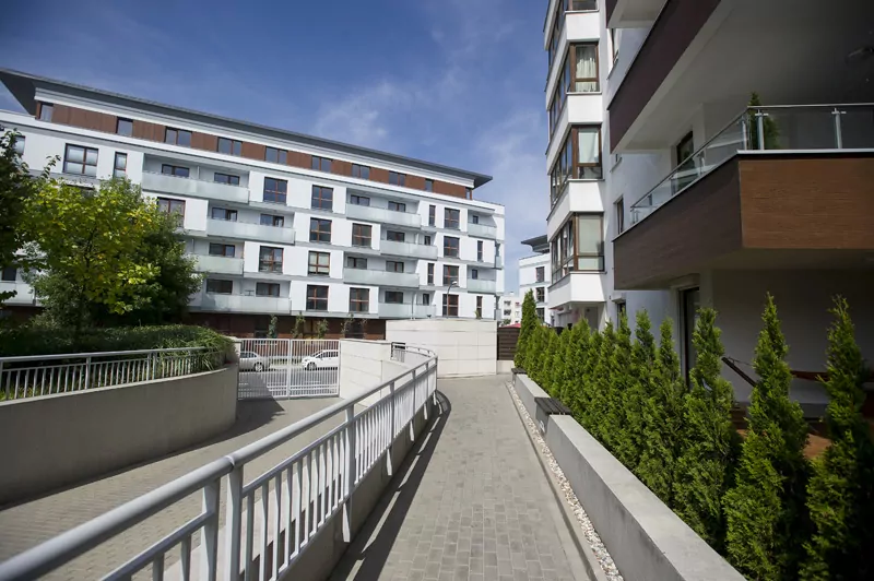 Przestrzenny układ osiedla z rozległym terenem zielonym między budynkami z tworzy niepowtarzalny klimat. Dla wygody mieszkańców powstał przestronny parking podziemny z wjazdem bezpośrednio z przylegającej ulicy. Dzięki takiemu rozwiązaniu wyeliminowany został ruch samochodowy miedzy budynkami, co zapewnia mieszkańcom komfort ciszy i spokoju. Dodatkowym elementem parkingu podziemnego są indywidualne pomieszczenia gospodarcze.