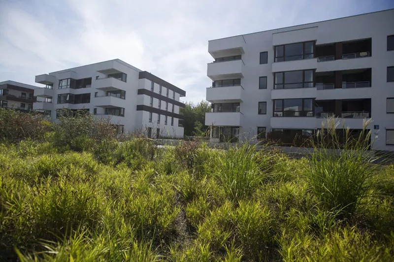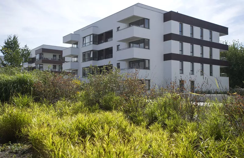 Osiedle składa się z dziesięciu kameralnych, trzy- i czteropiętrowych nowoczesnych, małych domów mieszkaniowych. Ich wzajemne usytuowanie rozplanowano w ten sposób, aby wygospodarować jak najwięcej przestrzeni wspólnej na terenie osiedla.