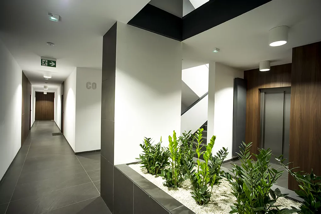 Rubikon Residence to kolejny projekt mieszkaniowy, do którego realizacji przystąpiliśmy na Łuku Siekierkowskim w rejonie ul. Bluszczańskiej. Ta inwestycja nie była jednak typowa – chociaż ciągle stanowiła budownictwo mieszkaniowe, w którym się specjalizujemy, to przyświecało nam stworzenie realizacji szczególnej. To ekskluzywna zabudowa – jeden budynek mieszkalny – o charakterze apartamentowym, skierowana do osób, które szczególnie cenią sobie kameralność, swobodę i dużą ilość zieleni.