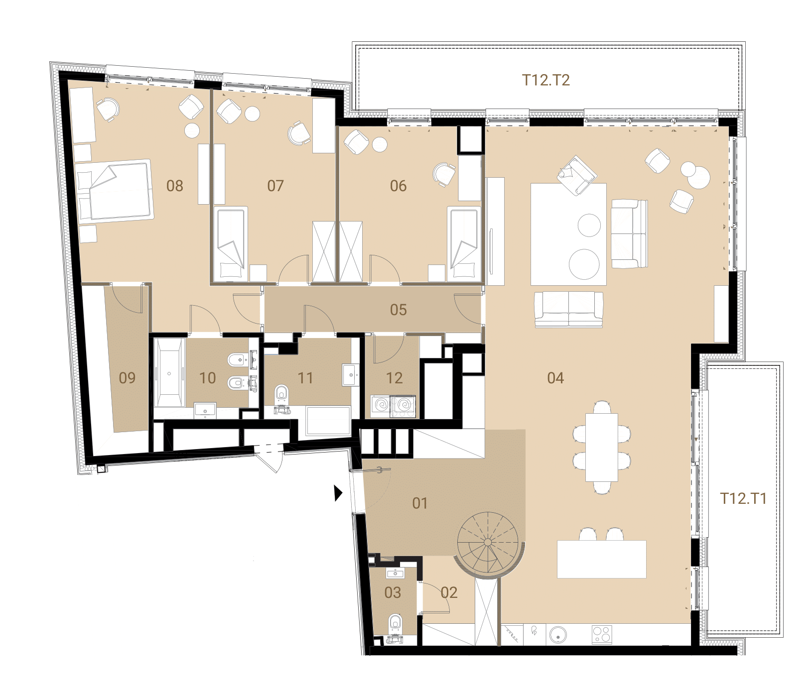 Mieszkanie nr: M12 Metraż: 179,04m2 Cena za 1m2: 29 800zł/m2 | 5 389 104zł Piętro: 3 Metraż balkonu lub tarasu: 74,35m2 Liczba pokoi: 4 Stan realizacji: w trakcie budowy ![]() |