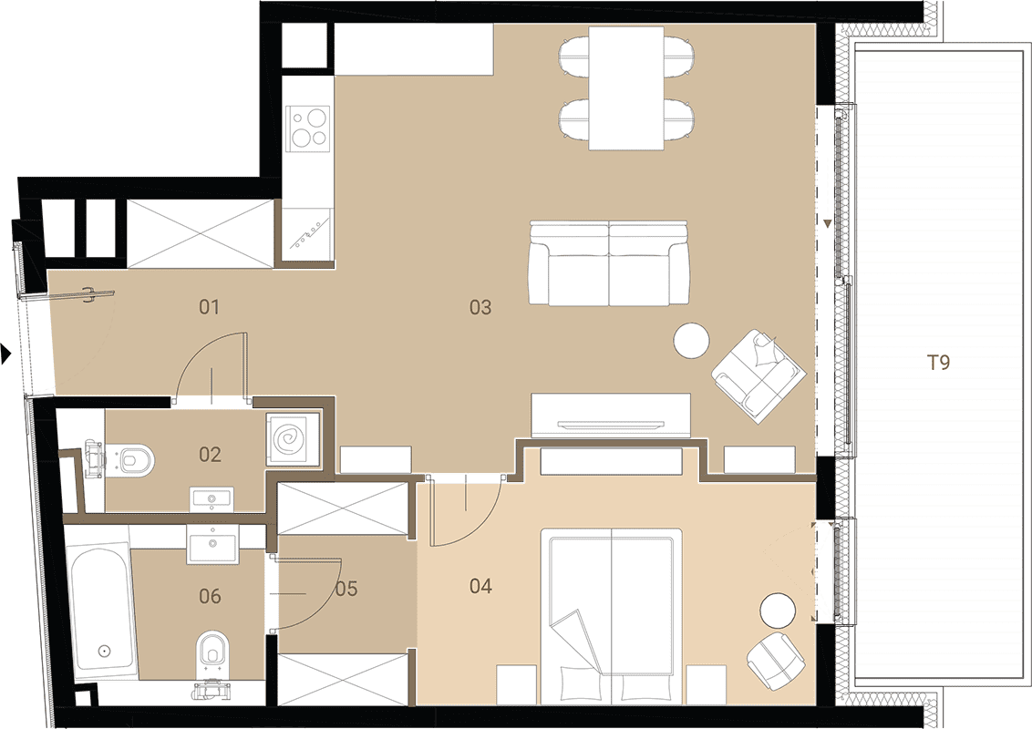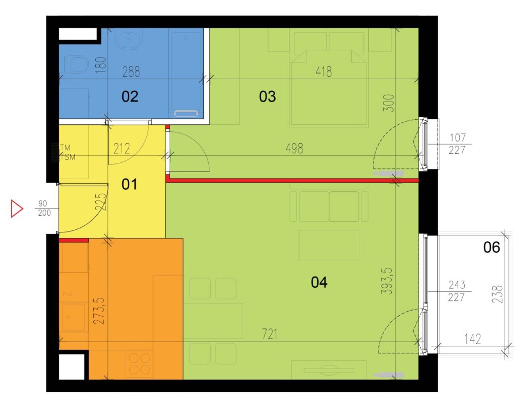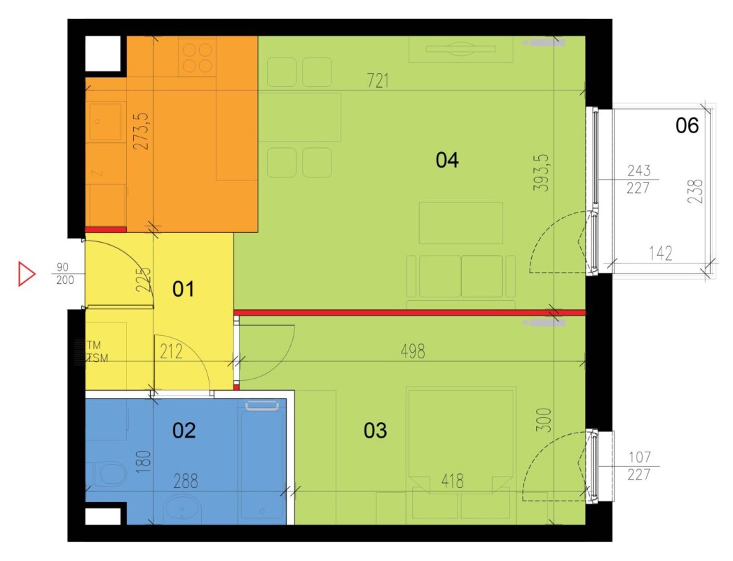 Mieszkanie nr: M06 Metraż: 51,84m2 Cena za 1m2: 29 800zł/m2 | 1 560 384zł Piętro: 1 Liczba pokoi: 2 Ekspozycja: płd Stan realizacji: w trakcie budowy ![]() |