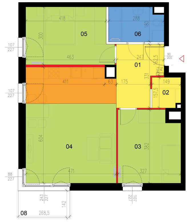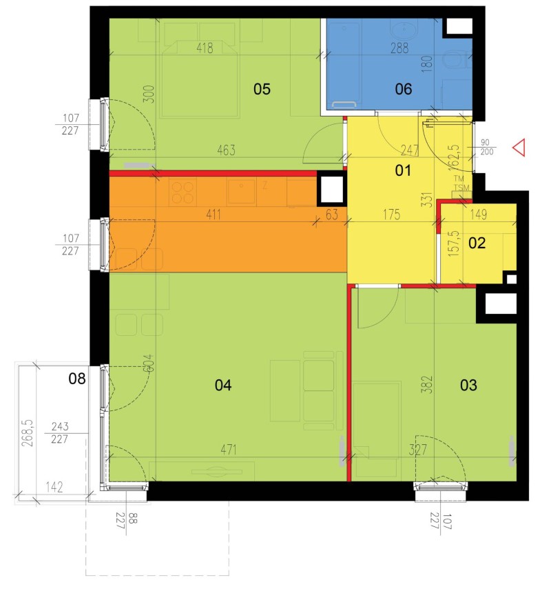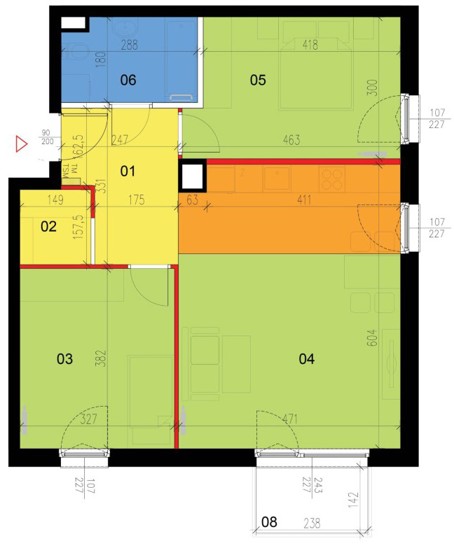 Mieszkanie nr: 08 Metraż: 61,72m2 Cena za 1m2: 16 600zł/m2 | 1 024 552zł Piętro: 1 Metraż balkonu lub tarasu: 8,95m2 Liczba pokoi: 3 Ekspozycja: płn/wsch Stan realizacji: w trakcie budowy ![]() |