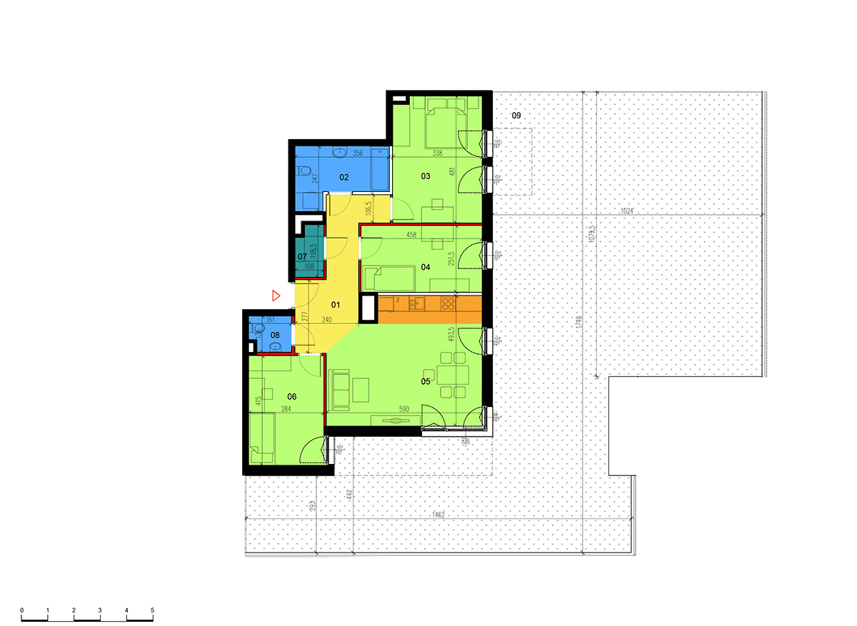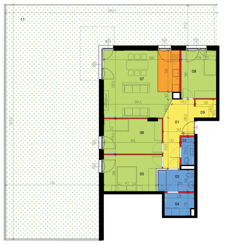 Mieszkanie nr: 02 Metraż: 87,74m2 Cena za 1m2: 16 400zł/m2 | 1 438 936zł Piętro: Parter Metraż balkonu lub tarasu: 178,69m2 Liczba pokoi: 4 Ekspozycja: płd/wsch Stan realizacji: w trakcie budowy ![]() |