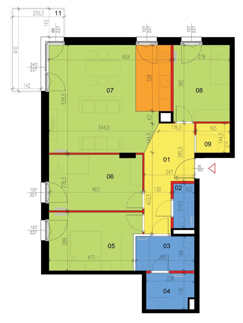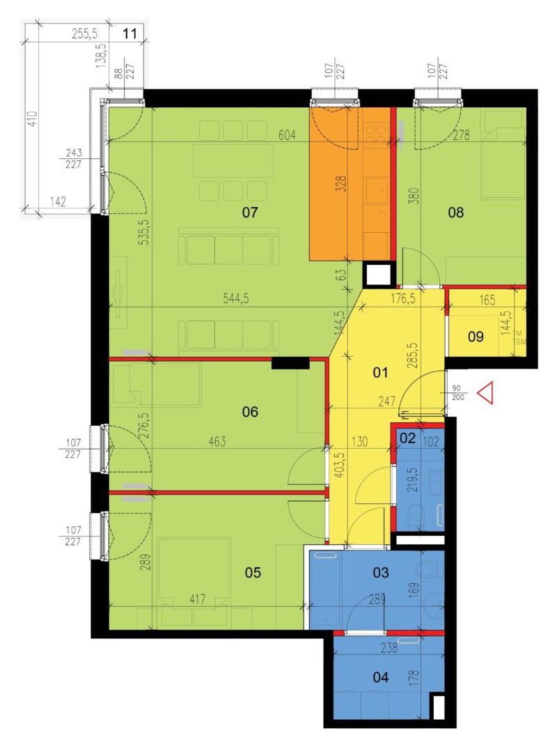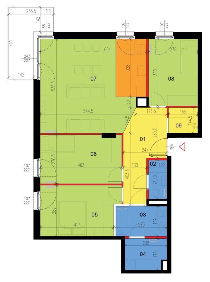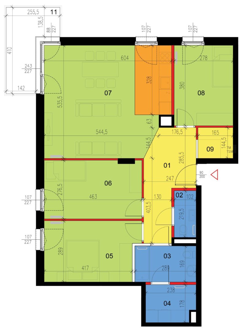 Mieszkanie nr: 35 Metraż: 89,87m2 Cena za 1m2: 14 500zł/m2 | 1 307 320 zł Piętro: 5 Metraż balkonu lub tarasu: 7,43m2 Liczba pokoi: 4 Ekspozycja: płn/zach Stan realizacji: w trakcie budowy ![]() |