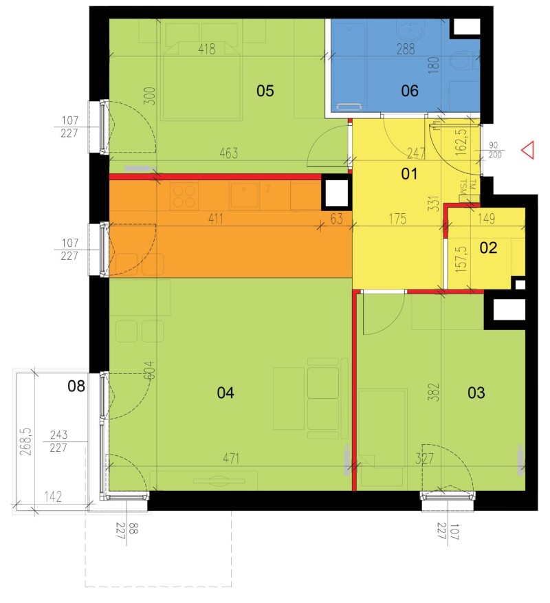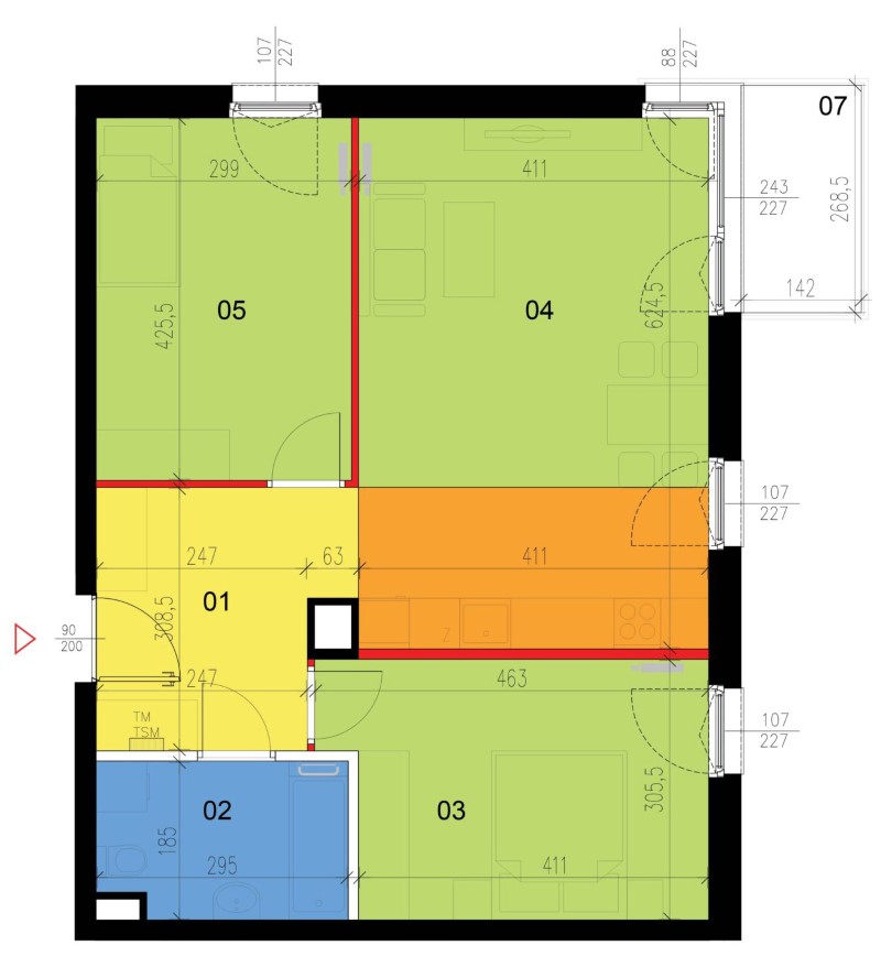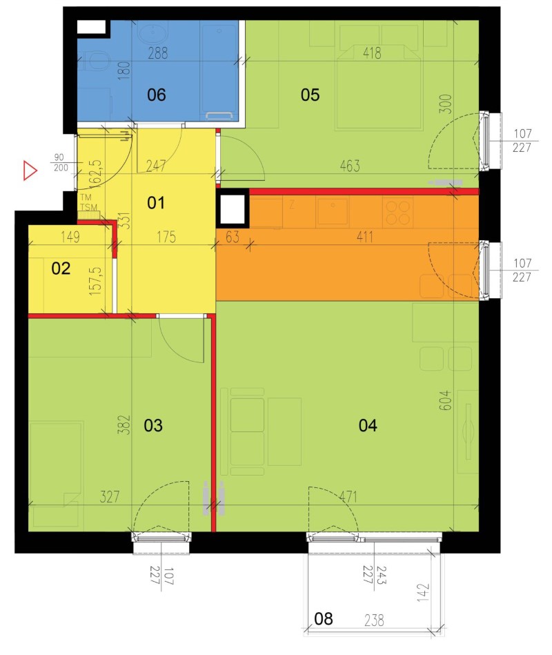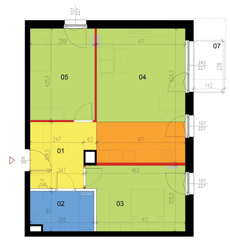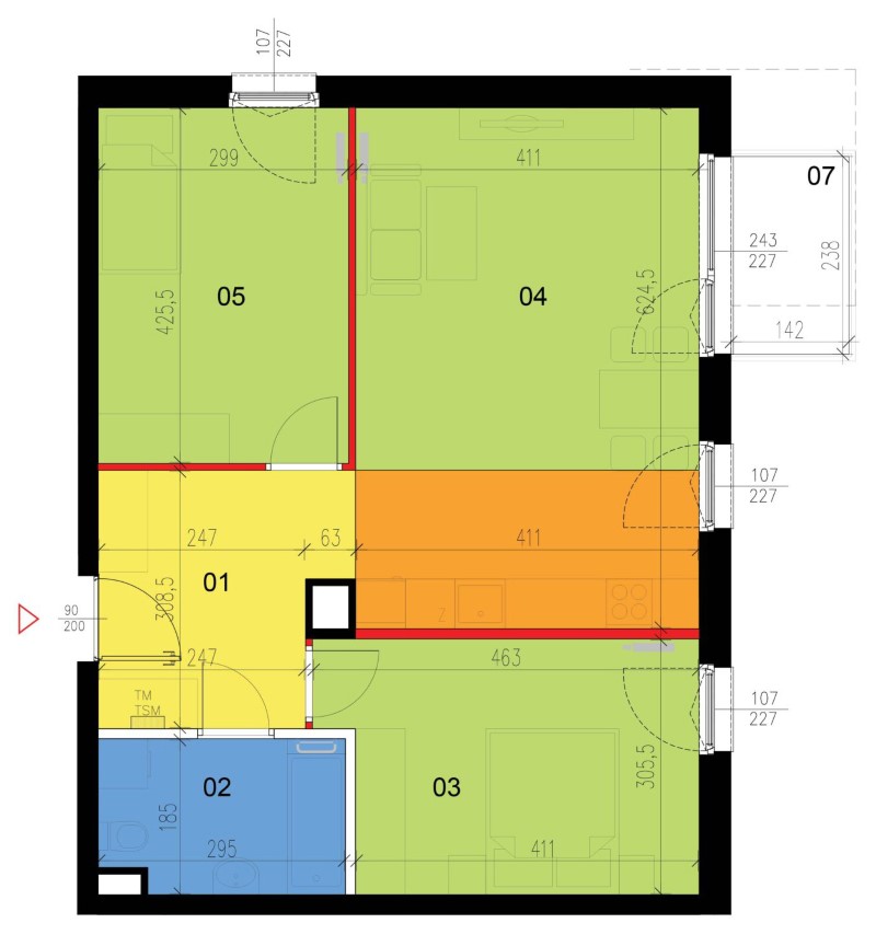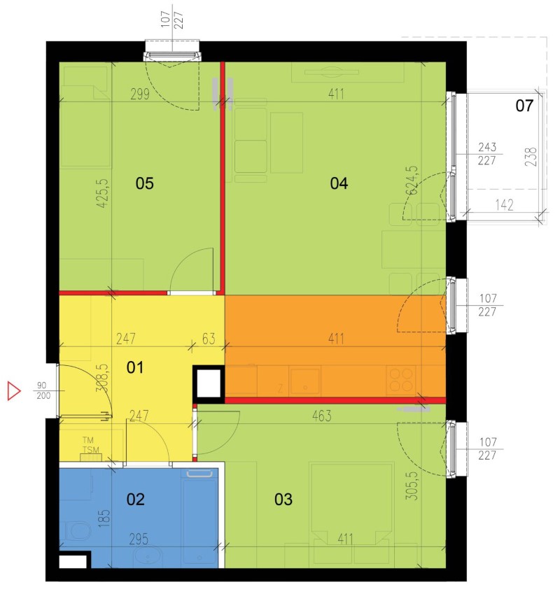 Mieszkanie nr: 07 Metraż: 25,51m2 Cena za 1m2: 16 800zł/m2 | 428 568zł Piętro: 1 Liczba pokoi: 1 Ekspozycja: wsch Stan realizacji: w trakcie budowy ![]() |