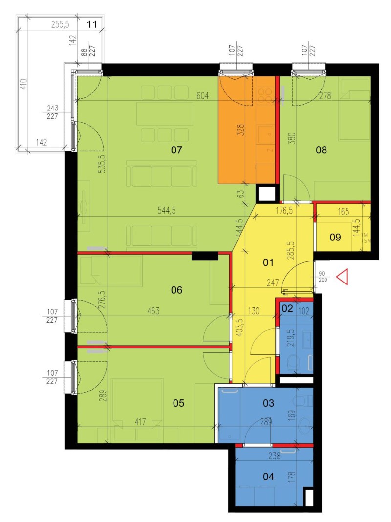 Mieszkanie nr: 30 Metraż: 61,10m2 Cena za 1m2: 16 900zł/m2 | 1 032 590zł Piętro: 4 Metraż balkonu lub tarasu: 3,38m2 Liczba pokoi: 3 Ekspozycja: zach Stan realizacji: w trakcie budowy ![]() |
