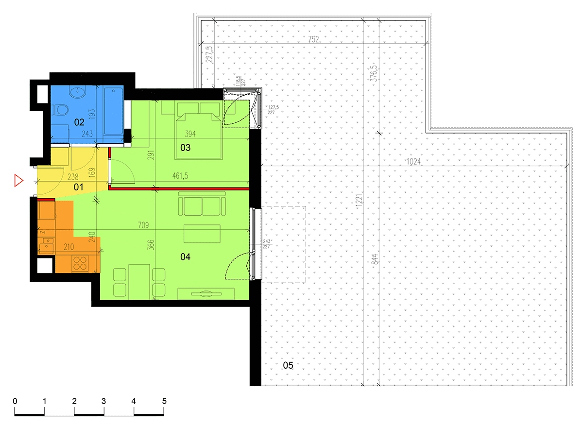 Mieszkanie nr: 04 Metraż: 46,37m2 Cena za 1m2: 16 500zł/m2 | 765 105zł Piętro: Parter Metraż balkonu lub tarasu: 30,84m2 Liczba pokoi: 2 Ekspozycja: zach Stan realizacji: w trakcie budowy ![]() |