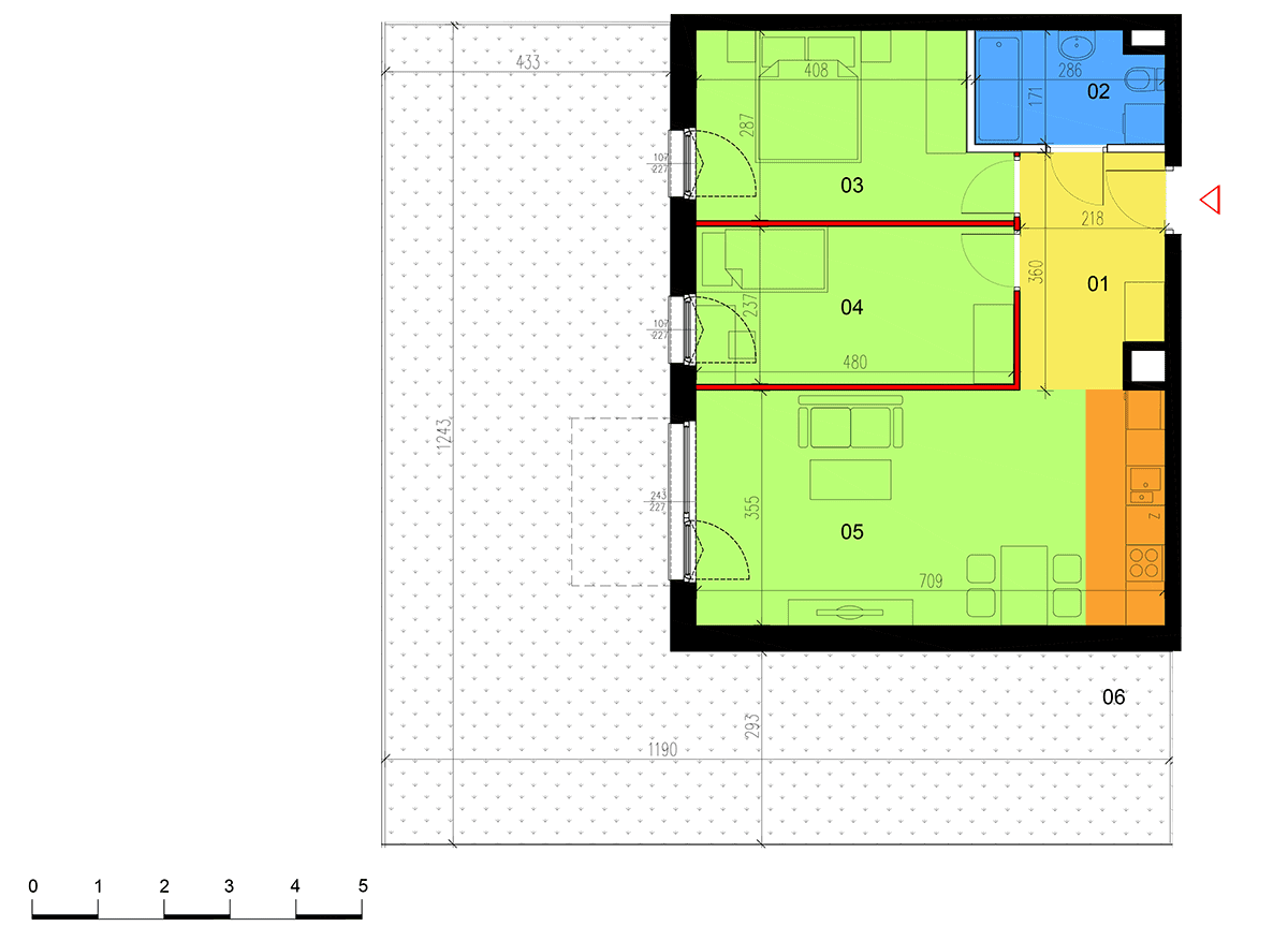Mieszkanie nr: 01 Metraż: 43,81m2 Cena za 1m2: 16 500zł/m2 | 722 865zł Piętro: Parter Metraż balkonu lub tarasu: 111,47m2 Liczba pokoi: 2 Ekspozycja: płd/wsch Stan realizacji: w trakcie budowy ![]() |